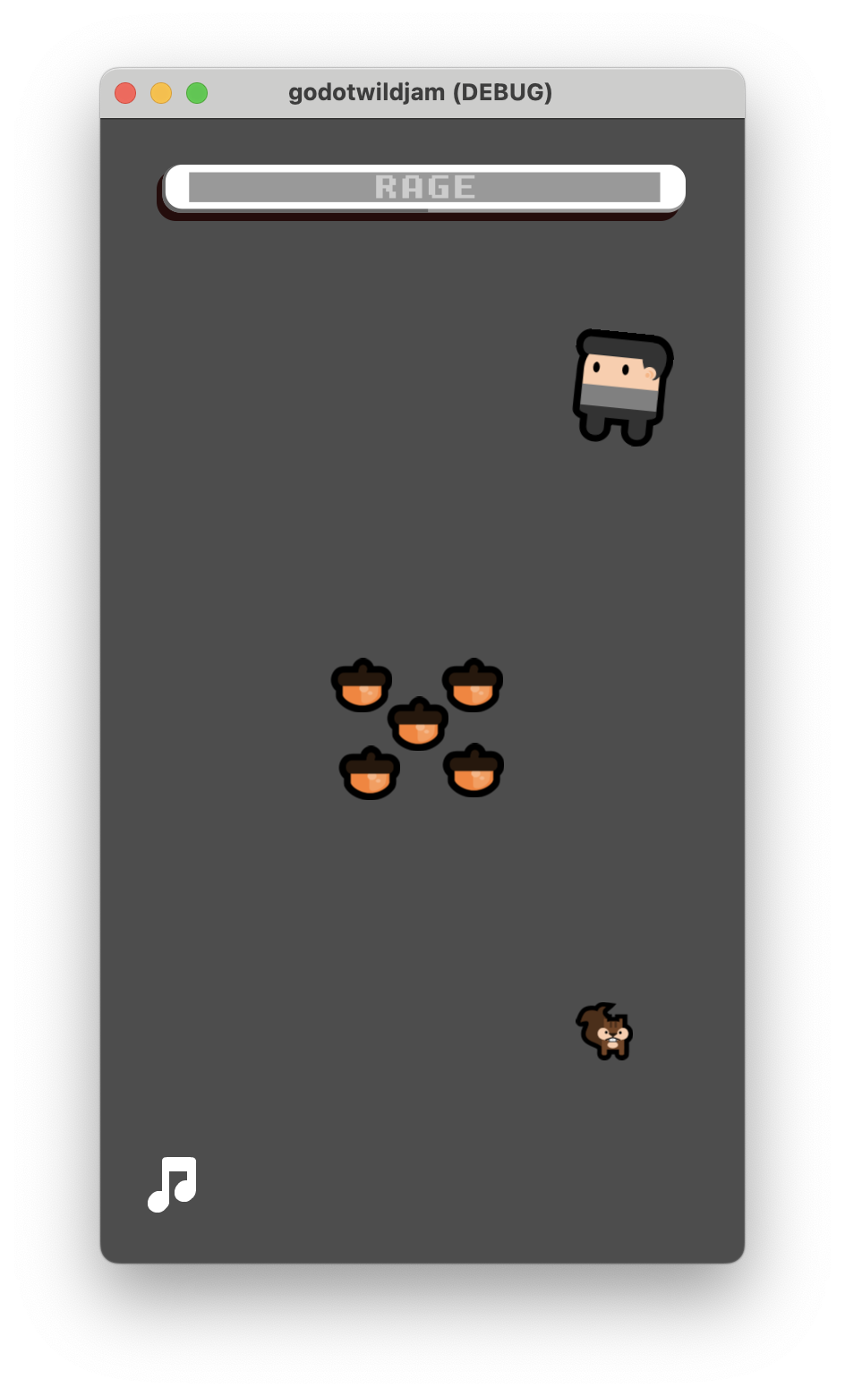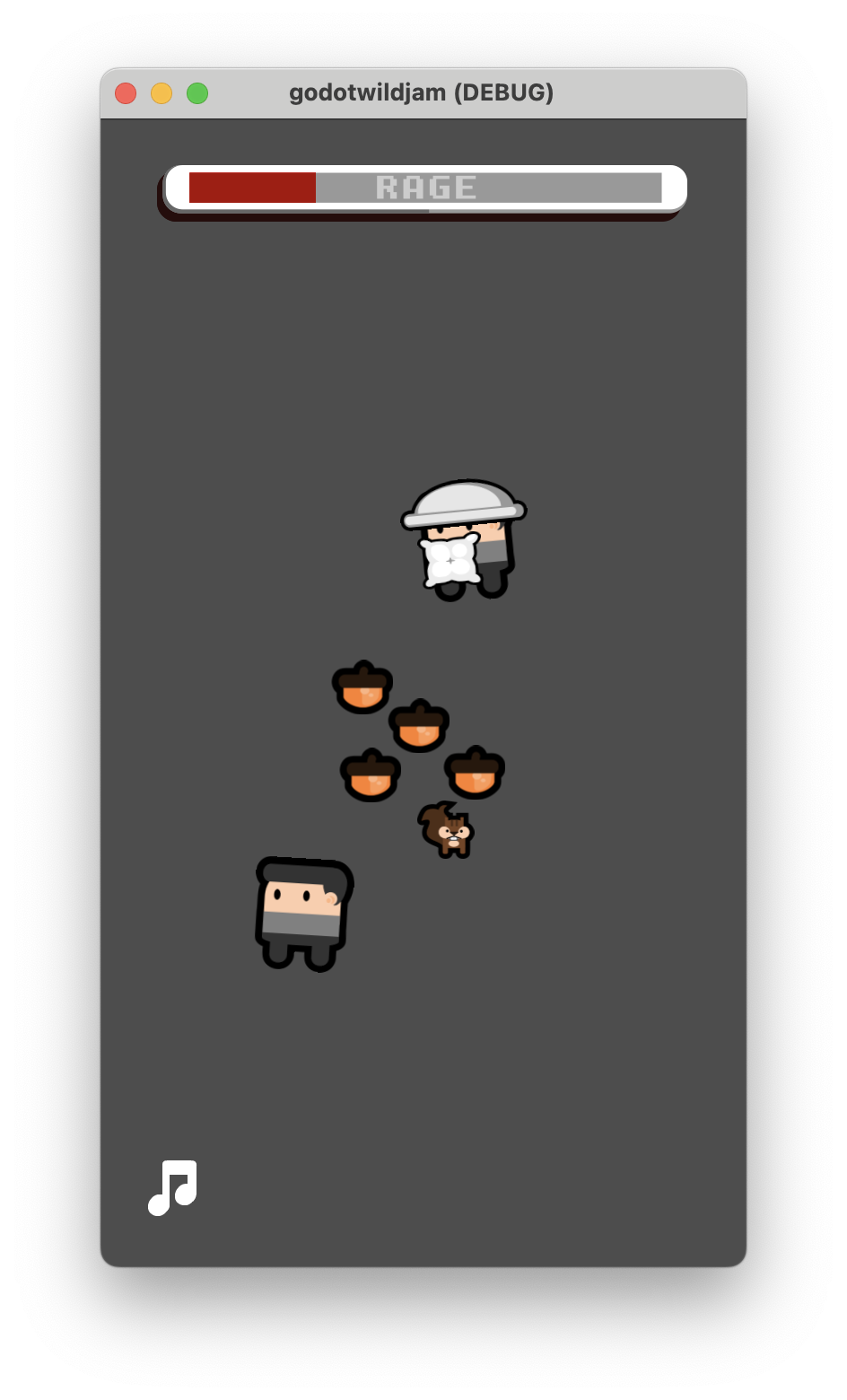 This a simple arcade game I submitted for Godot Wild Jam #84. You play as squirrel and run around the screen knocking humans, to prevent them from stealing what remains of your acorn stash. Dash towards the human to knock them out, stop and they'll push you back. You lose if the humans steals all your acorn.